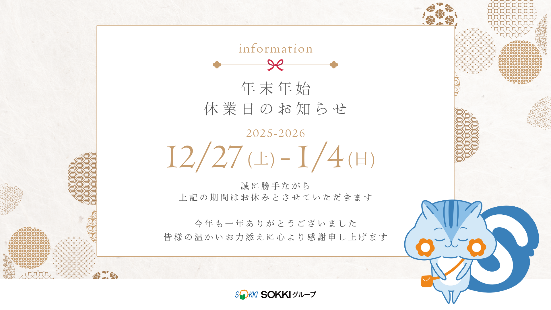 年末年始休業のお知らせ